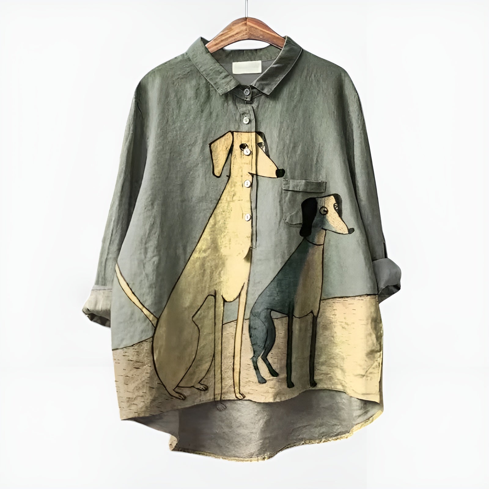 Den Almira skjorte er mere end bare et stykke tøj: det er et udtryk for lethed, godt humør og kærlighed til detaljer. Perfekt til gåture, dage i byen eller en udflugt, giver den dig en følelse af afslappet komfort, som du ikke vil give slip på. Den oversize pasform omfavner din figur med frihed, mens hundemotivet tilføjer et legende twist til din daglige stil.