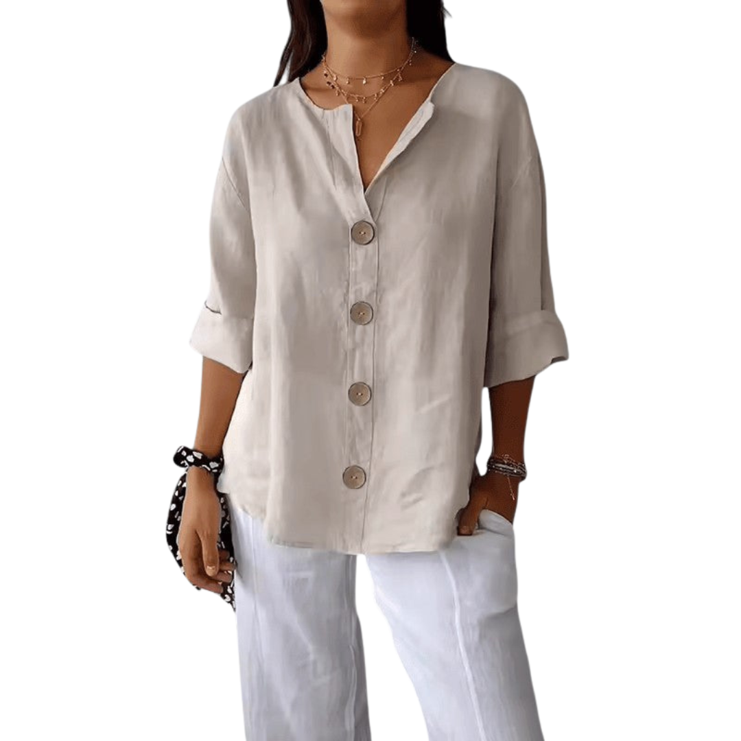 Oplev den lette sommer med skjorten Sasha™. Et stykke tøj, der forener afslappet stil og daglig raffinement. Perfekt til varme dage, giver den friskhed og en naturlig elegance fra arbejde til fritid.